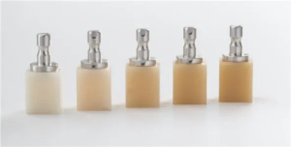 ENA CAD discs and monolayer blocks are available in the following shades: UD0, UD0.5, UD1, UD2, UD3, and UD3.5.