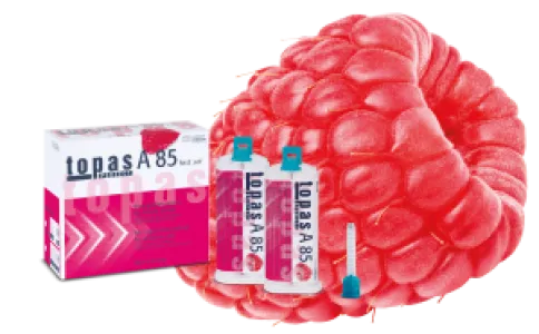 Impressive range of impression materials Aqium 3D, scannable premium A-silicones (VPS); betasil VARIO, standard A-silicone (VPS); alphasil PERFECT and SILECT, C-silicones; topas PERFECT, granit PERFECT, kristall PERFECT A70, bite registration materials (VPS) and alginates algistar classic and chromatic.