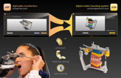 The world's first plaster-free articulation method to use digitally acquired jaw scans in an analog way. A combination of software and hardware elements calculates the most material and time-saving pressure and fills the gaps between articulator and model with mounting plates and spacer blocks.