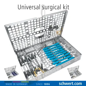 Universal surgical kit for all common surgical or micro surgical treatments. In the new SCHWERT Ergo handle for fatigue less and precise operating. Available in three different color variations.