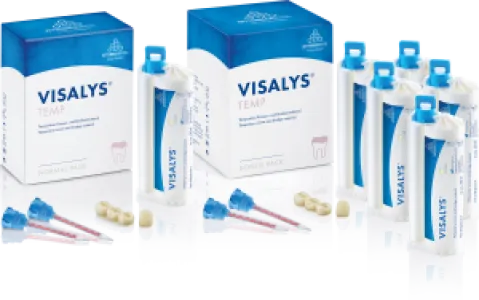 Visalys® Temp & Visalys® Temp One:One - temporary crown and bridge material for exceptionally stable and fracture-resistant short-term and long-term temporary restorations; also available in the 1:1 cartridge system