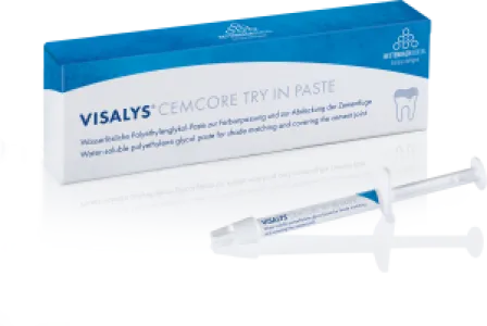 Visalys® CemCore - dual-curing, adhesive cementation composite that is suitable for cementing all indirect restorations and is compatible with all dental materials