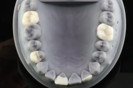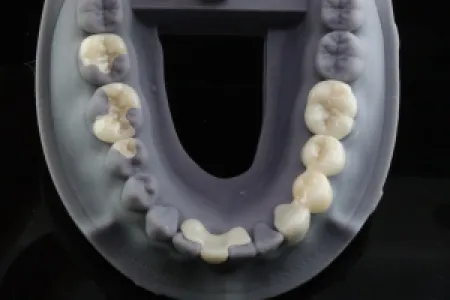 3Delta Crown is a 50% ceramic-filled resin for printing crowns, inlays, onlays, veneers and denture teeth. Restorations made with 3Delta Crown can be individualized using standard veneering composite systems, have excellent wear resistance and great intra-oral stability. 3Delta Crown shows great mechanical values with 144 MPa in flexural strength and 5815 MPa in flexural modulus.