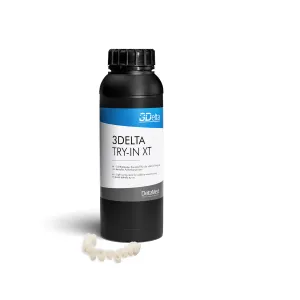3Delta Try-In XT is a light-curing resin for printing functional and aesthetic try-ins. Due to its tooth shade matching colour, it serves perfect in patient communication. 3Delta Try-In XT fits perfectly in the 3Delta Denture Workflow and is TPO-free.