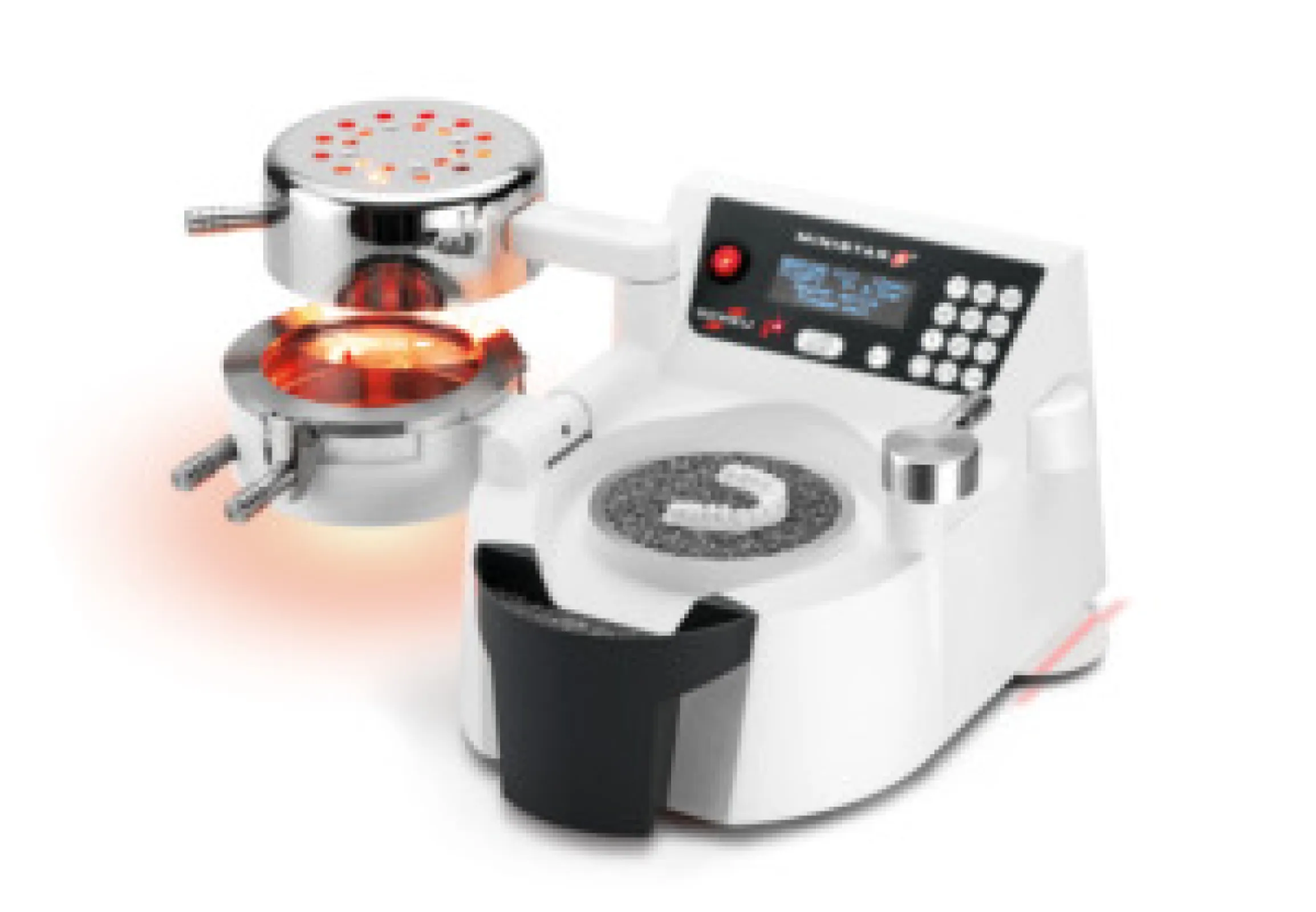 The compact pressure moulding unit MINISTAR S® equipped with scanning technology: scanner reads the coded material, allowing programming of all important parameters such as heating time, temperature and cooling time. In other words: precise pressure moulding results are reached in record time thanks to the extremely fast, patented heater and working pressure of 4.0 bar, adjustable via pressure regulator. New generation equipped with user-friendly membrane keypad and large display. All operating parameters are monitored and indicated on the display.