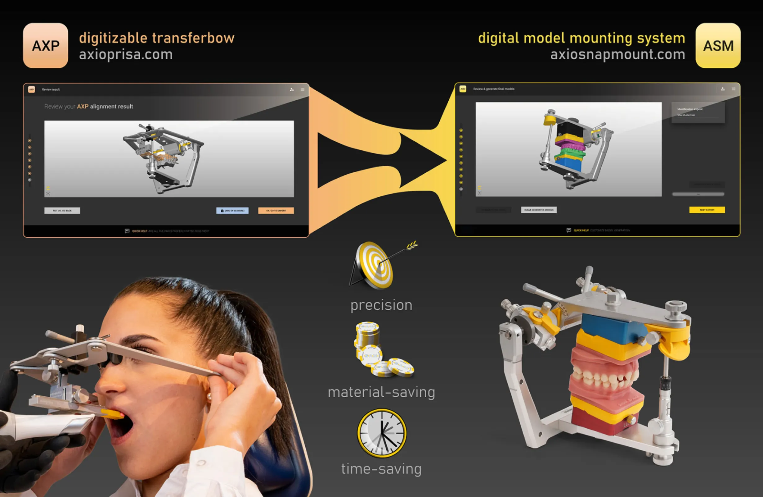 World's first digitizable transfer fork assembly that can be recorded with an intraoral scanner. The combination of the hardware and software enables the anatomical alignment of the scans in the virtual space for CAD/CAM software.